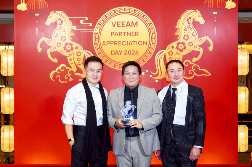 On this occasion, Mr. Manopat Nartsilp, VP, Sales & Marketing, Cloud Solution at VST ECS (Thailand) Co., Ltd., represented the company in receiving the award from Mr. Macro Zhang, Vice President of APJ Channel Strategy & Management, together with Mr. Jessada Pasaworawit, Senior Manager for Thailand and the Philippines at Veeam Software Co., Ltd. The award was presented at the Veeam Partner Appreciation Day 2026, held at Yunnan Renjia Restaurant, Bangkok.