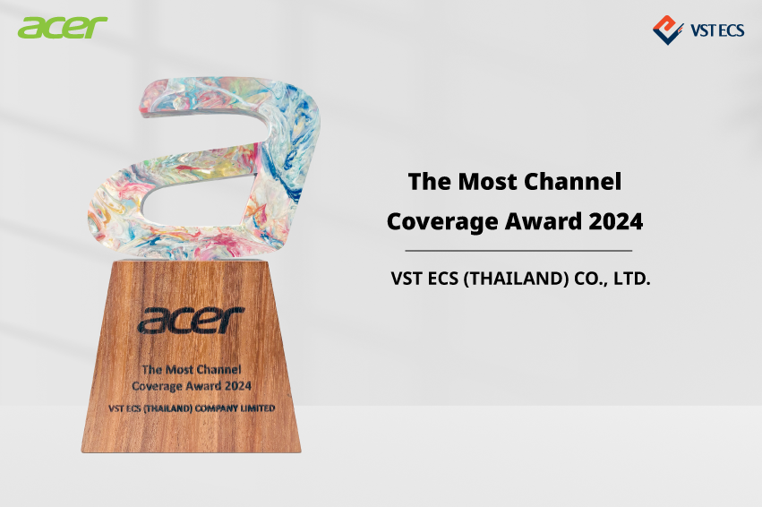 บริษัท วีเอสที อีซีเอส (ประเทศไทย) จำกัด ในเครือของวีเอสที อีซีเอส กรุ๊ป ผู้นำด้านการจัดจำหน่ายสินค้าไอทีในภูมิภาคเอเชียแปซิฟิก โดยคุณสมศักดิ์ เพ็ชรทวีพรเดช ประธานเจ้าหน้าที่บริหาร รับมอบรางวัล "The Most Channel Coverage Award 2024" ในฐานะผู้นำที่มีเครือข่ายครอบคลุมช่องทางการจัดจำหน่ายมากที่สุดในประเทศไทย จากคุณเจฟ ลี กรรมการผู้จัดการ ประจำประเทศไทย บริษัท เอเซอร์ คอมพิวเตอร์ จำกัด ในงาน "Acer Dealer Awards Ceremony 2024: Growing Together" ซึ่งจัดขึ้น ณ โรงแรมเซ็นทารา แกรนด์ แอท เซ็นทรัลพลาซ่า ลาดพร้าว กรุงเทพ