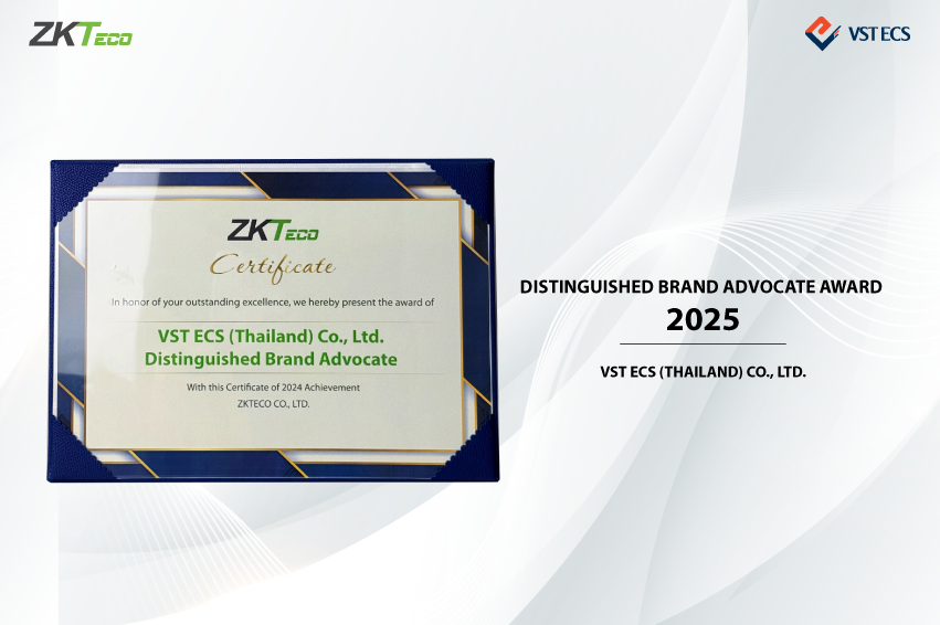 วีเอสที อีซีเอส (ประเทศไทย) รับรางวัล Distinguished Brand Advocate Award 2025 ผู้แทนจำหน่ายดีเด่นประจำปี 2568 จาก ZKTeco