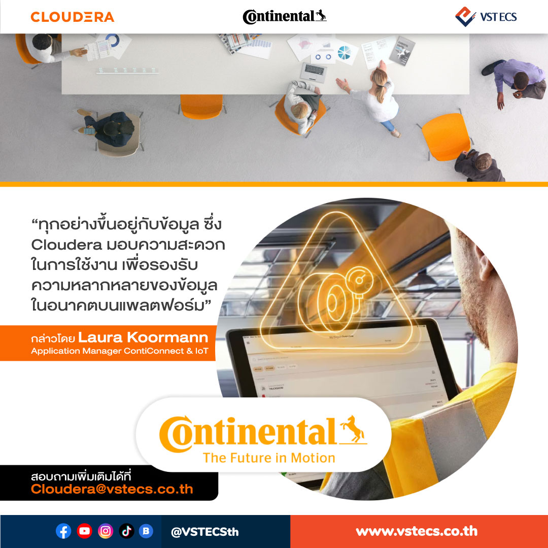 “ทุกอย่างขึ้นอยู่กับข้อมูล ซึ่ง Cloudera มอบความสะดวกในการใช้งาน เพื่อรองรับความหลากหลายของข้อมูลในอนาคตบนแพลตฟอร์ม” - Laura Koormann, Application Manager ContiConnect & IoT, Continental Tires