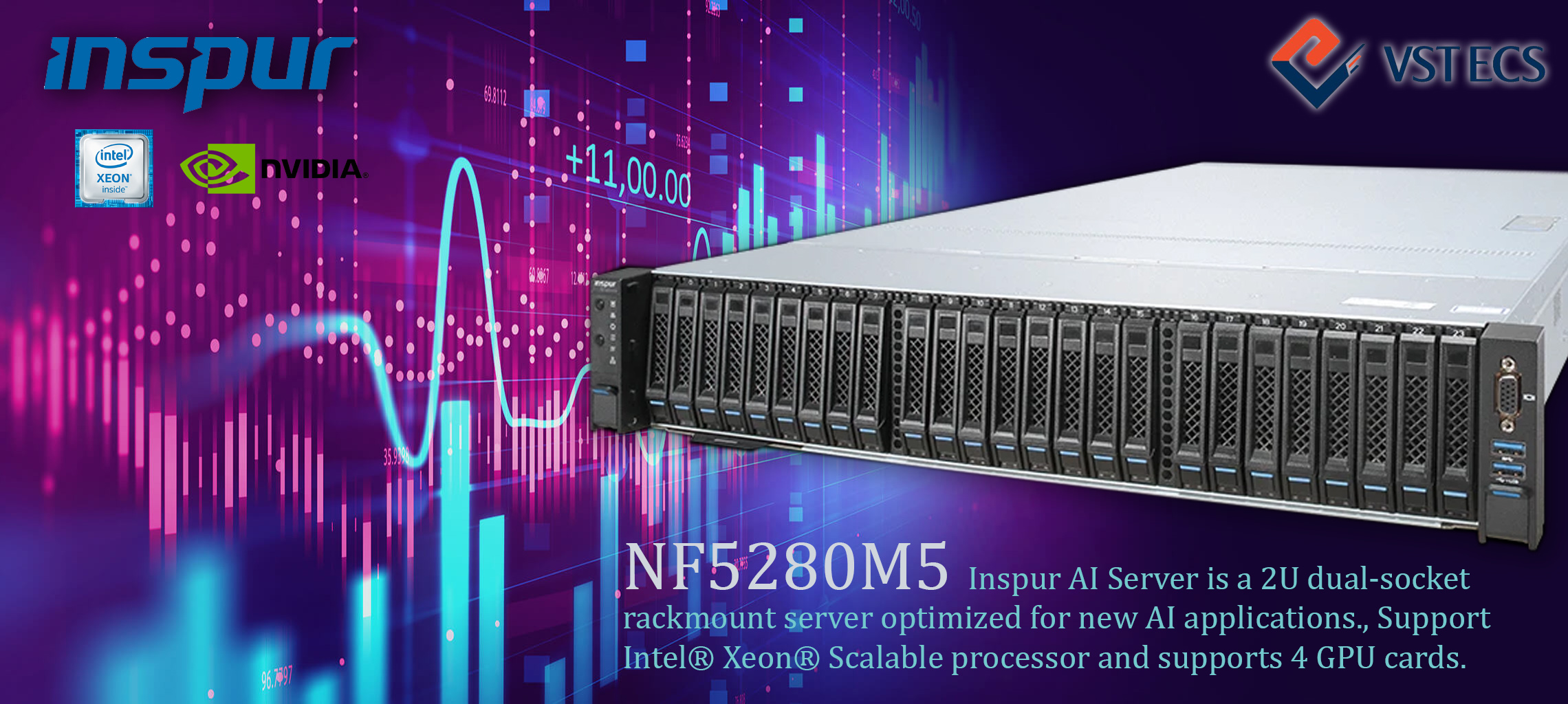 Inspur คือผู้นำเสนอความสามารถด้าน AI แพลตฟอร์มฮาร์ดแวร์แบบครบวงจร ที่รองรับทุกๆ แอปพลิเคชัน เฟรมเวิร์กการจัดการ เพื่อตอบสนองความต้องการของลูกค้าได้อย่างครอบคลุมทุกกลุ่มธุรกิจ โดย Inspur NF5280M5 Server คืออุปกรณ์ประมวลผลที่มีประสิทธิภาพสูง รองรับการใช้งานแอปพลิเคชันการเรียนรู้เชิงลึกที่หลากหลาย และสามารถจัดการกับปริมาณข้อมูลที่มากขึ้นได้ เพื่อให้เกิดความคุ้มค่าสูงสุดในทุกๆ แอปพลิเคชัน