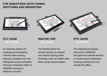 Wacom one : ขนาดตัวเครื่อง จอ 13.3 นิ้ว มาคู่กับ ปากกา free battery การเชื่อมต่อด้วยสาย HDMI เข้าที่ PC รองรับ Window 7 ขึ้นไป & Mac OS & อุปกรณ์โทรศัพท์ อาทิ เช่น Samsung Huawei โดยรวมเหมาะกับการ Presentation บรรยายการสอนต่างๆ ให้แก่ผู้ฟัง ได้รับรู้
