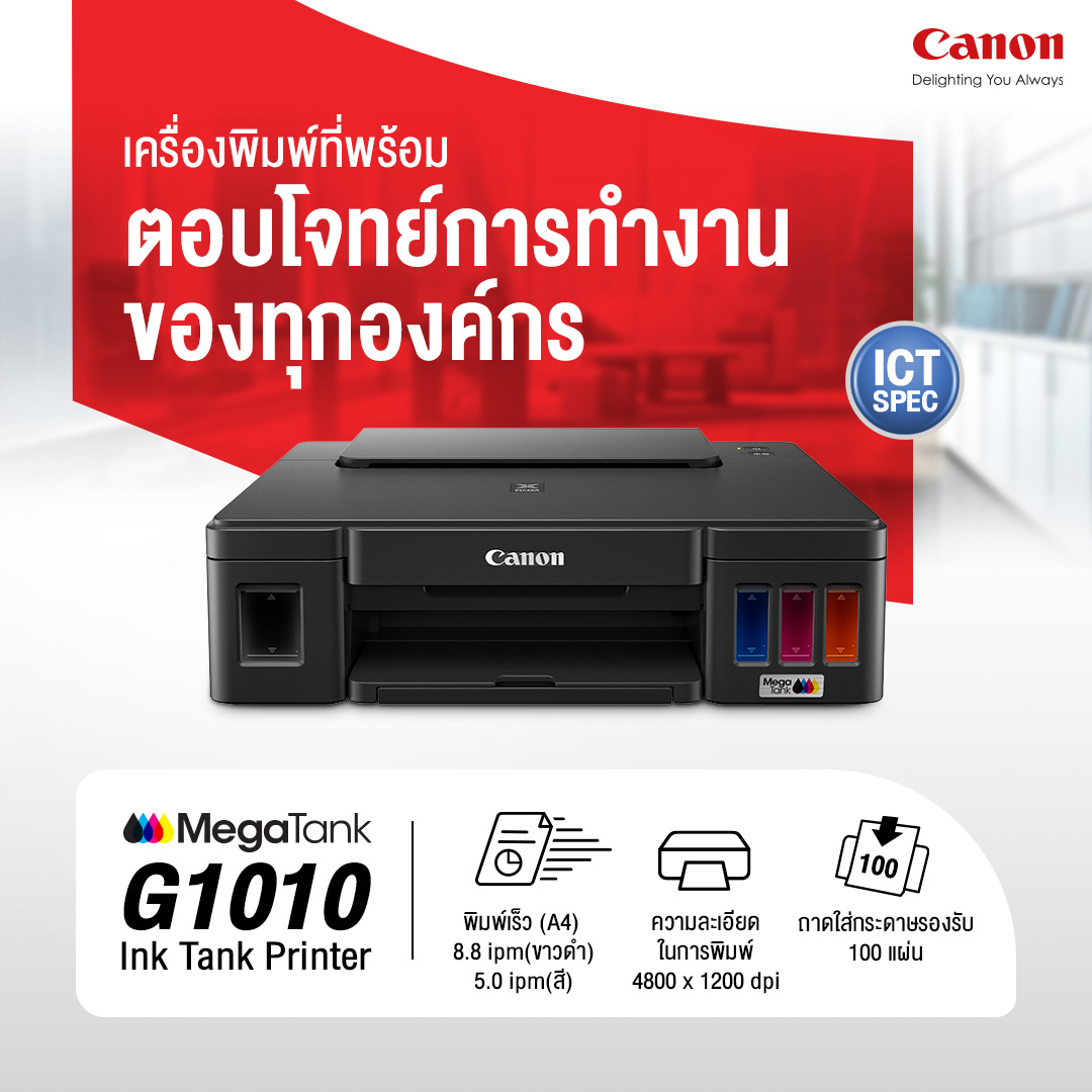 Canon MegaTank G1010 เครื่องพิมพ์พร้อมใช้ สำหรับทุกโรงเรียนหรือรัฐวิสาหกิจ พร้อมตอบโจทย์การทำงานของทุกองค์กร ตาม ICT Spec