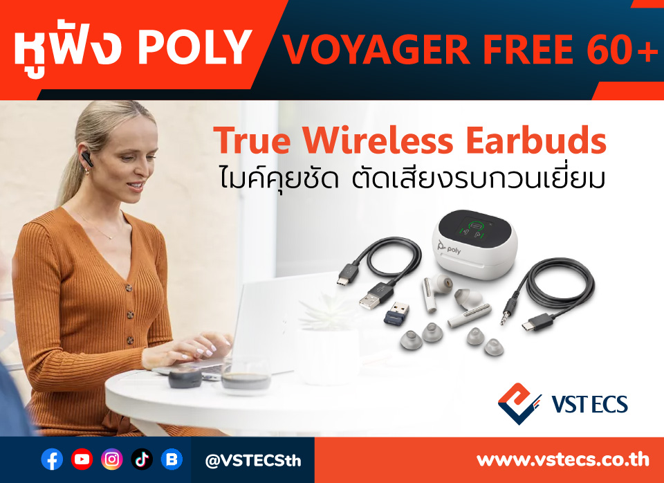 หูฟัง Poly Voyager Free 60+ True Wireless Earbuds ไมค์คุยชัด ตัดเสียงรบกวนเยี่ยม!!