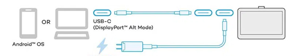 หากคุณมีคอมพิวเตอร์เครื่องใหม่ซึ่งเพิ่งมีการวางตลาดภายในสามปีที่ผ่านมา คุณน่าจะสามารถเสียบสาย USB-C เส้นเดียวจากคอมพิวเตอร์ของคุณเข้ากับ Wacom One ได้โดยตรง และพร้อมใช้งานได้ทันที โดยเฉพาะอย่างยิ่งหากคอมพิวเตอร์ของคุณเสียบปลั๊กไฟอยู่